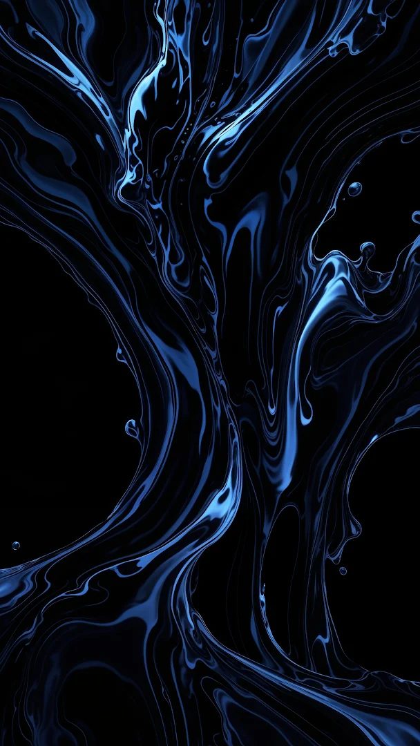 Glossy electric blue fluid flows dynamically against deep black, creating a hypnotic, high-contrast abstract texture. Ideal for tech, luxury, or modern minimalist design themes.