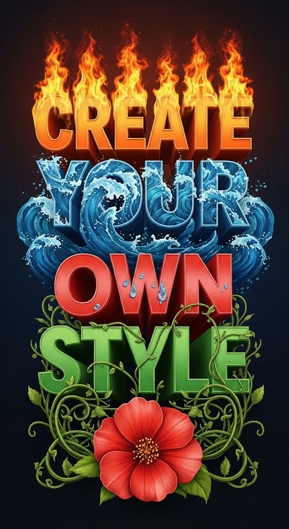 A high-energy composition merging fire, water, and flora around bold motivational text with UI-safe margins.