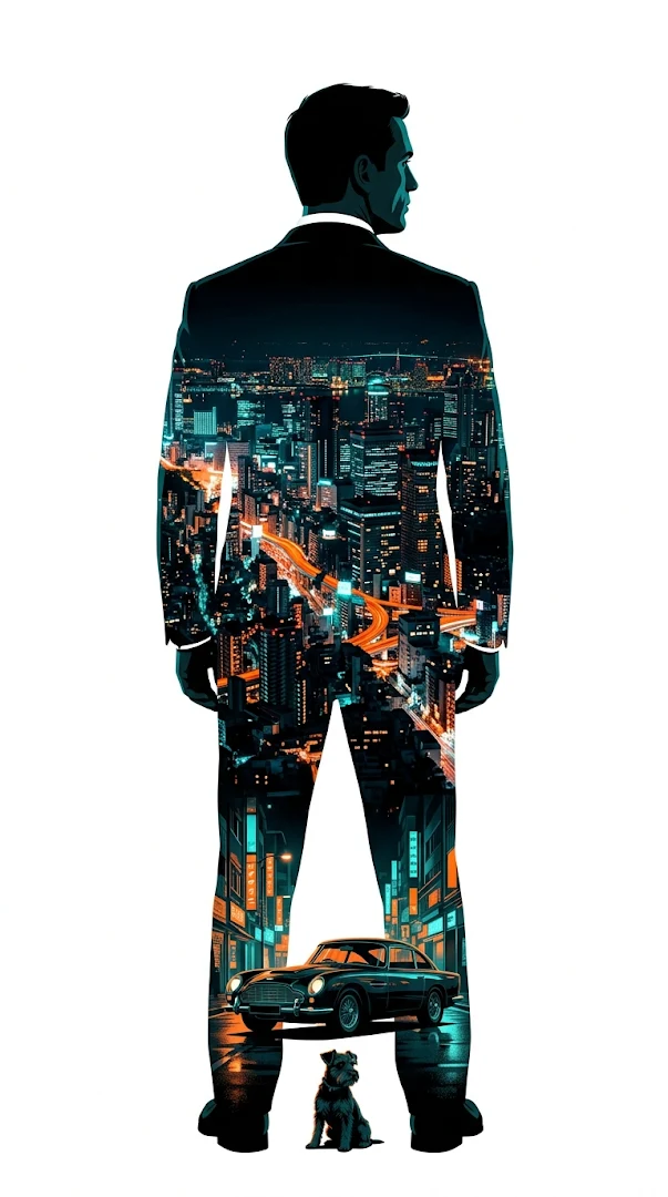 A sophisticated double-exposure style graphic with a high-contrast white background.